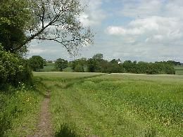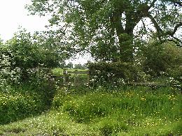 leading across a field to a gap in the opposite hedge. Through the gap the now